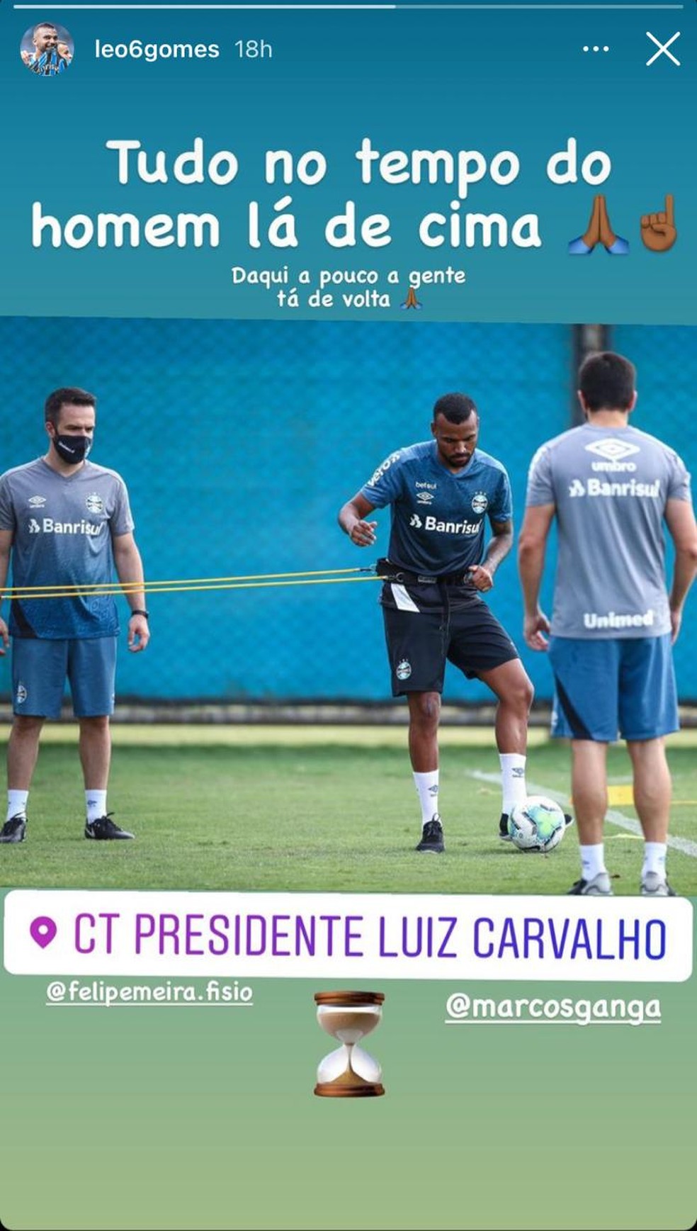 O Grêmio não dá prazo para o retorno de Leonardo aos gramados. No momento, ele tenta readquirir seu equilíbrio muscular. A partir daí, intensificará os treinos com bola e posteriormente treinará com os demais jogadores. O lateral tem contrato com o clube até o final de 2021.